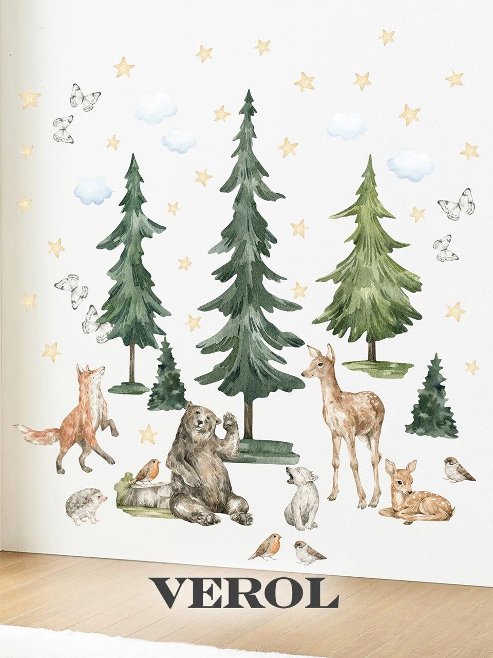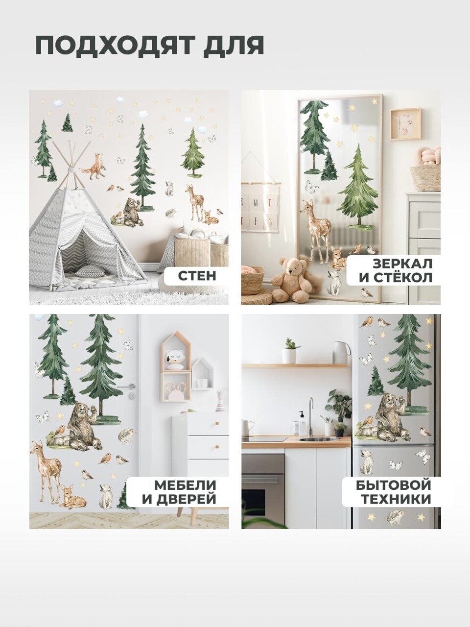 Наклейки интерьерные VEROL "Лесные животные" декор для дома на стену, детские наклейки для декора и интерьера, пленка самоклеящаяся, подарок интересное: