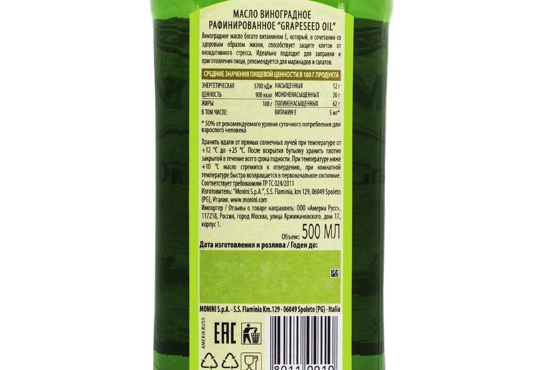 Купить Монини Масло из виноградных косточек "Grapeseed Oil" 500мл
