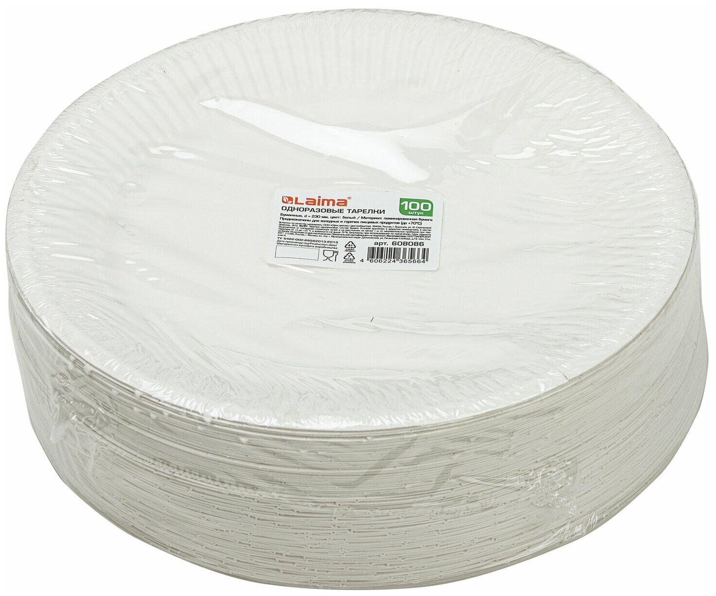 Тарелка одноразовая бумажная 180 мм, 100 штук, стандарт, жиростойкая ламинированная, LAIMA, 608085, 1шт в компл.