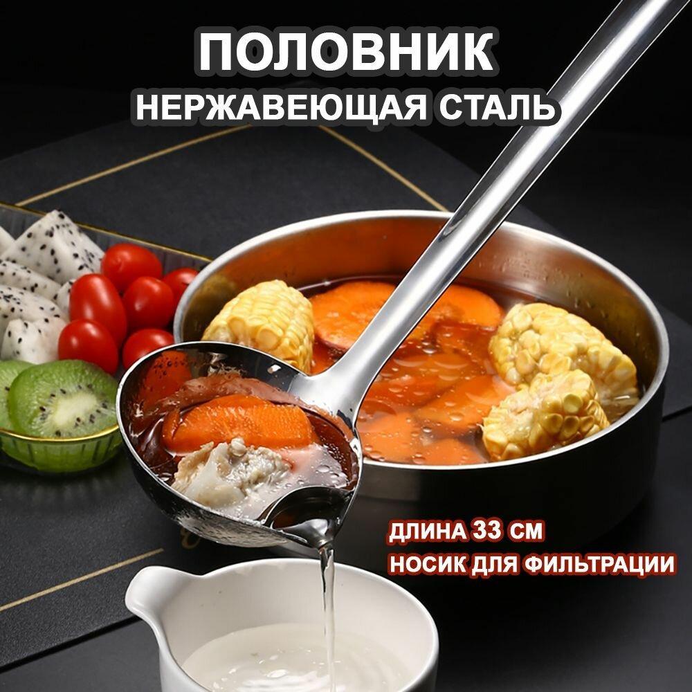 Металлический половник для супа из нержавеющий стали 33см с носиком для фильтрации интересное: