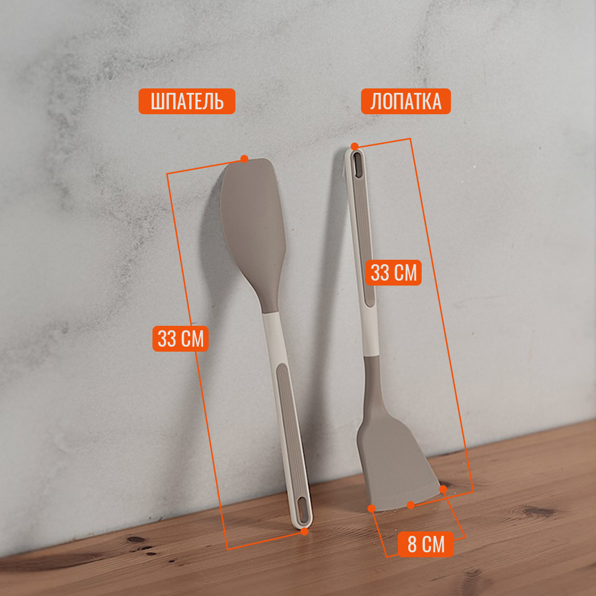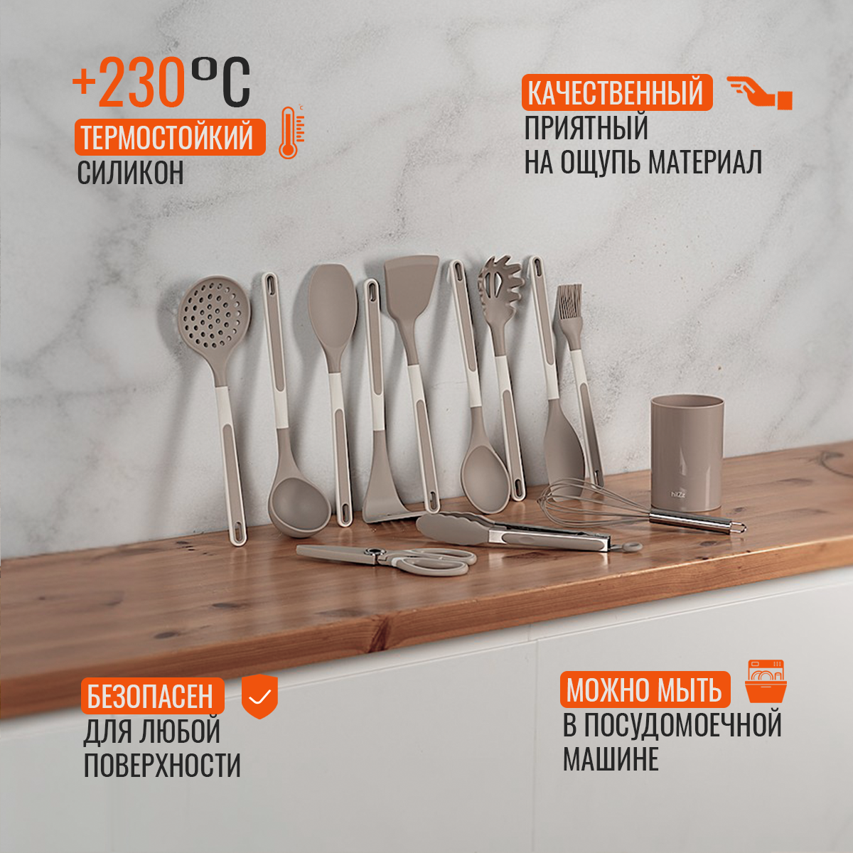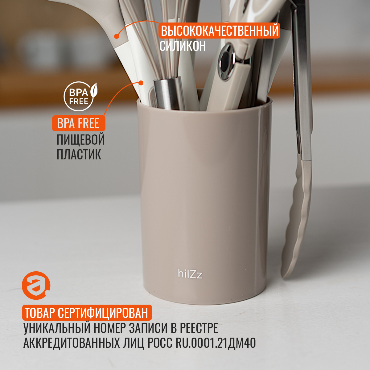 Набор кухонных принадлежностей HILZZ 13 предметов из силикона с подставкой, серый интересное:
