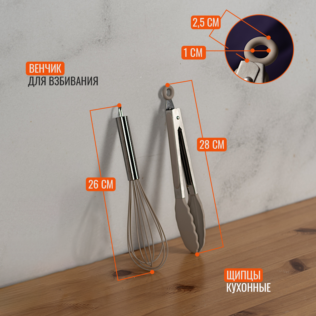 | Комплектация | Шумовка, Щипцы, Ножницы, Подставка, Половник, Лопатка, Шпатель кулинарный, Венчик, Кисточка для масла, Картофелемялка, Ложка, Ложка для спагетти |