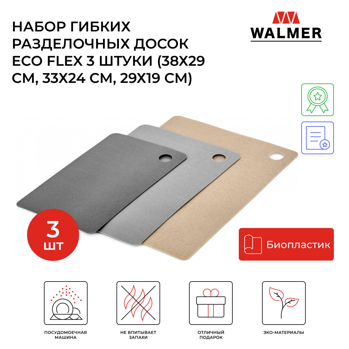 Купить Набор гибких разделочных досок Walmer Eco Flex 3 штуки (38х29 см, 33х24 см, 29х19 см), цвет серый