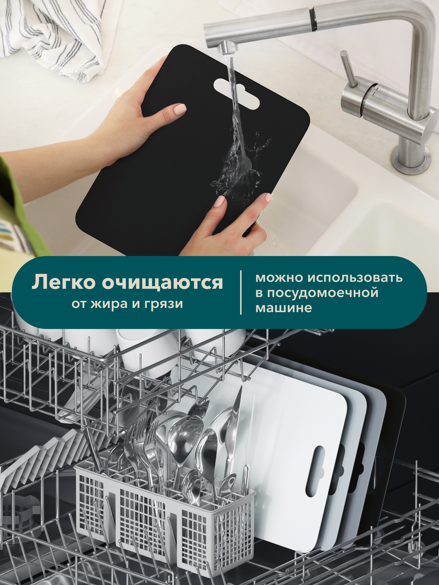 | Особенности | антибактериальное покрытие / гибкая / двухсторонняя / мытье в посудомоечной машине / нескользящая / подвесная |
