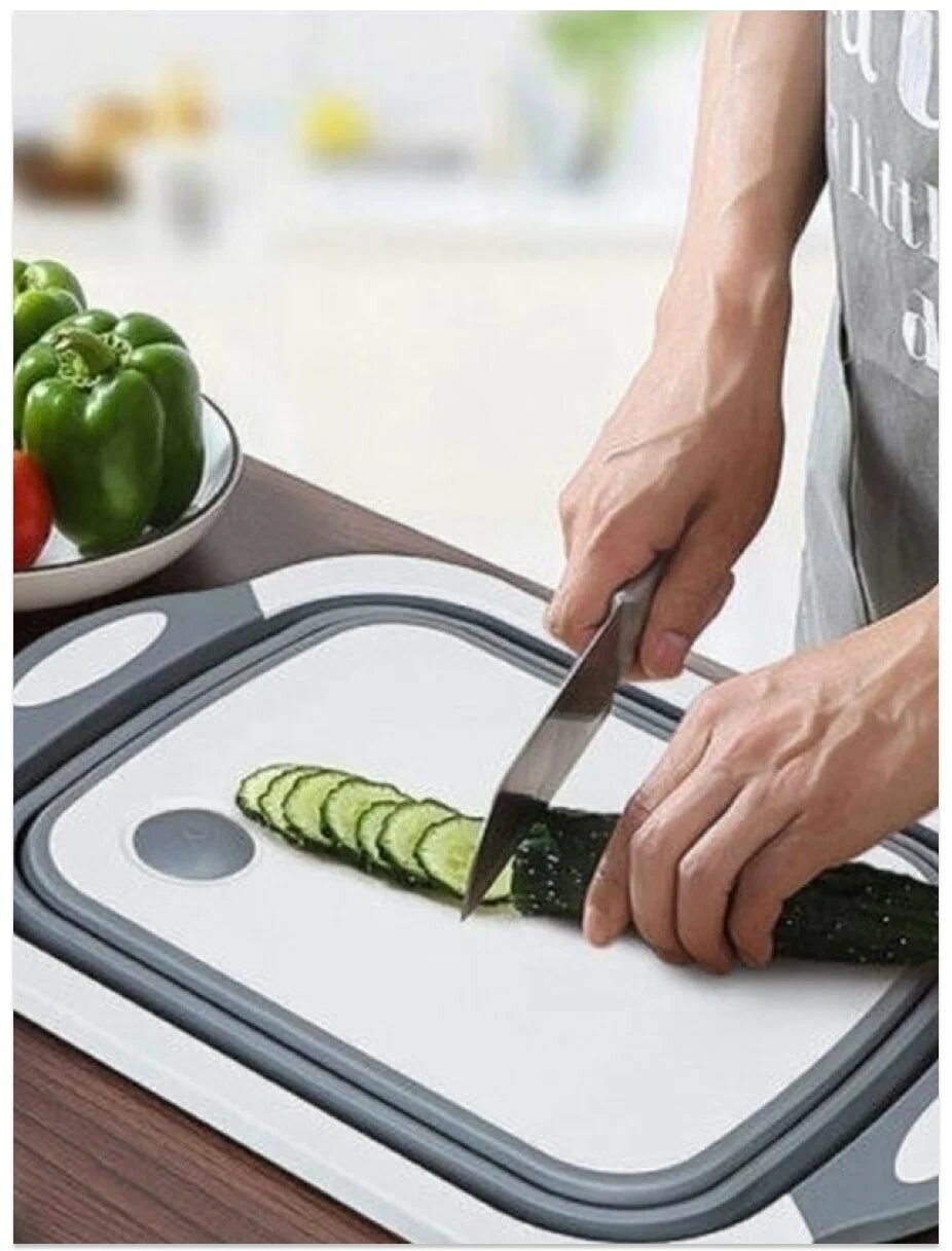 Купить Разделочная доска складная 3в1 серая , доска разделочная, контейнер для продуктов, дуршлаг, многофункциональная доска нескользящая
