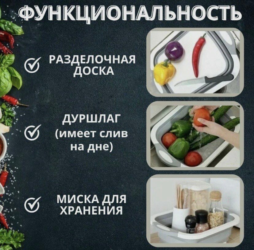 Складная разделочная доска 3 в 1 / многофункциональная, трансформер Дуршла́г интересное: