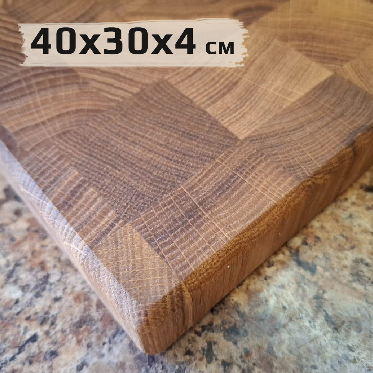Доска разделочная деревянная торцевая из дуба, 50x40x4см, большая