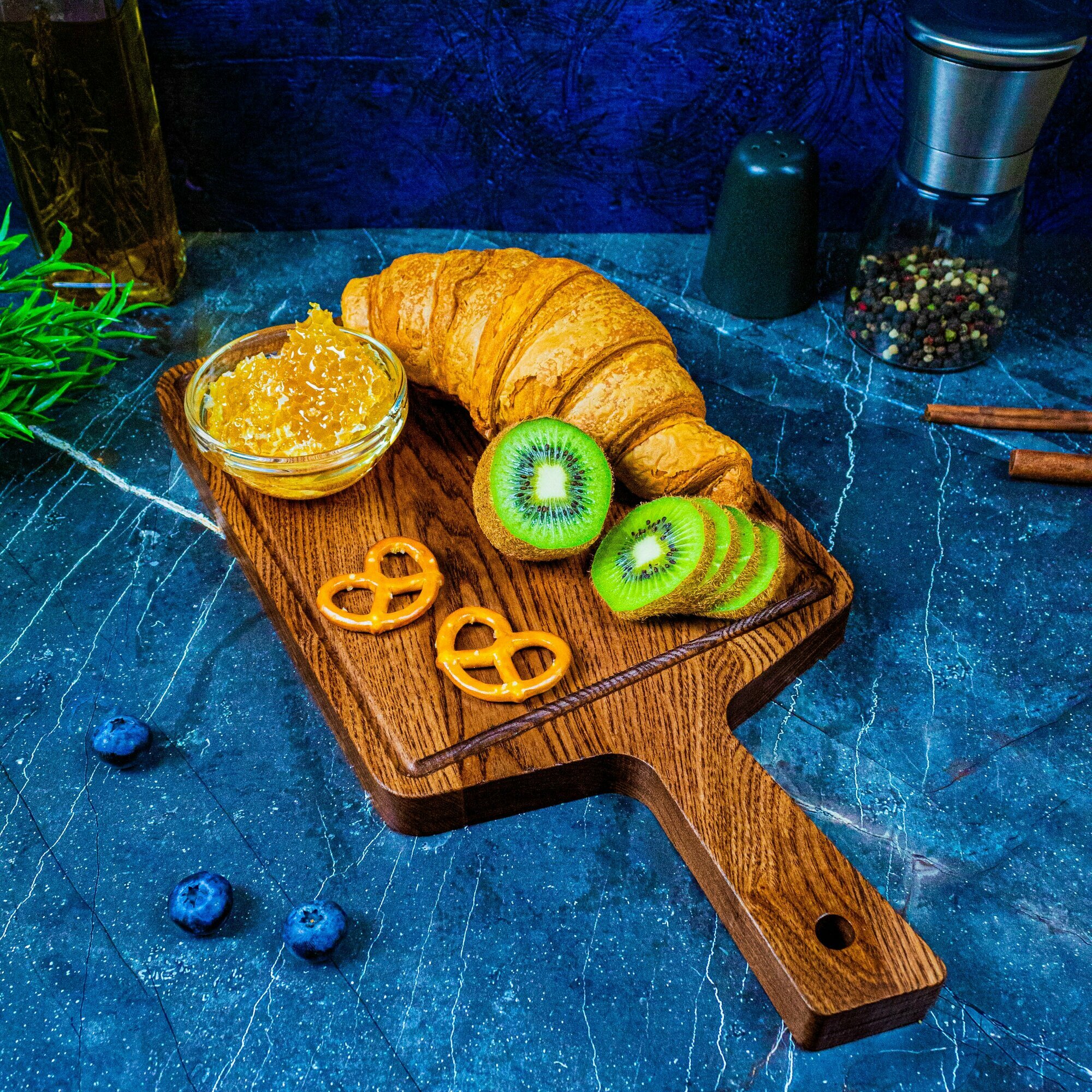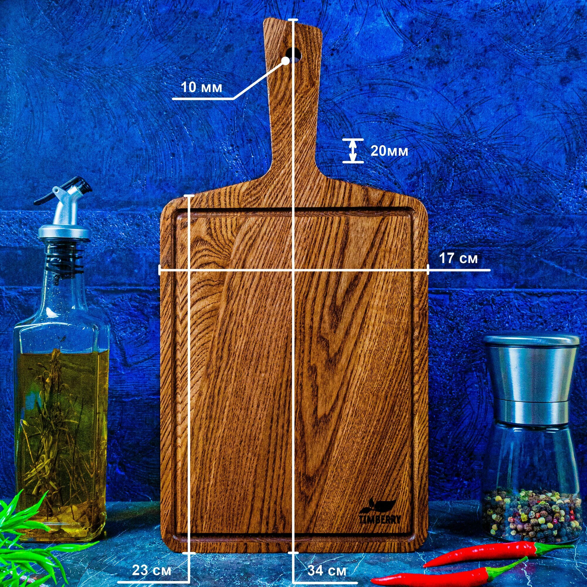 Разделочная доска деревянная 34х17 см из дуба с ручкой интересное: