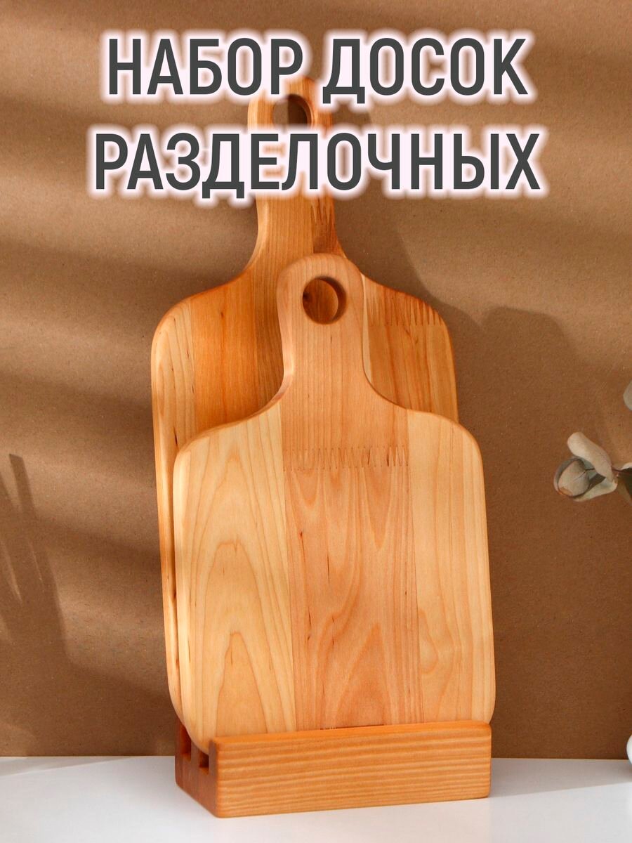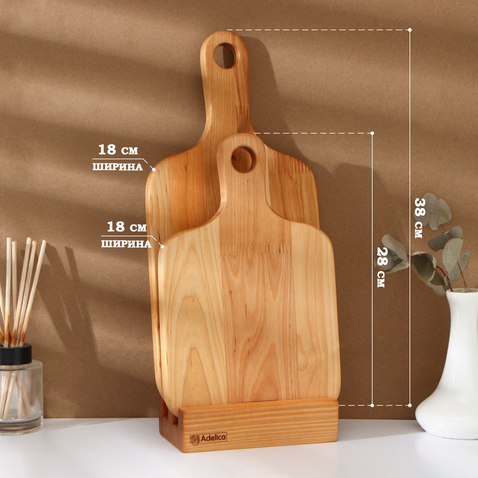Набор разделочных досок на подставке 2 шт: 38×18, 28×18 см, пропитаны минеральным маслом, берёза интересное:
