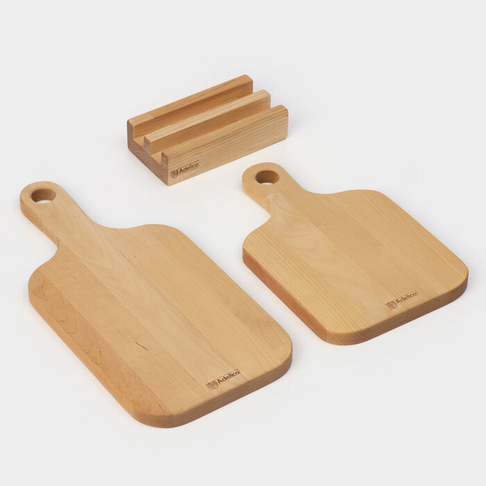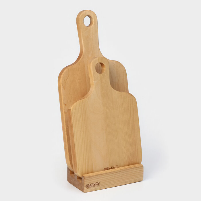 Набор разделочных досок на подставке 2 шт: 38?18, 28?18 см, пропитаны минеральным маслом, берёза Ade .