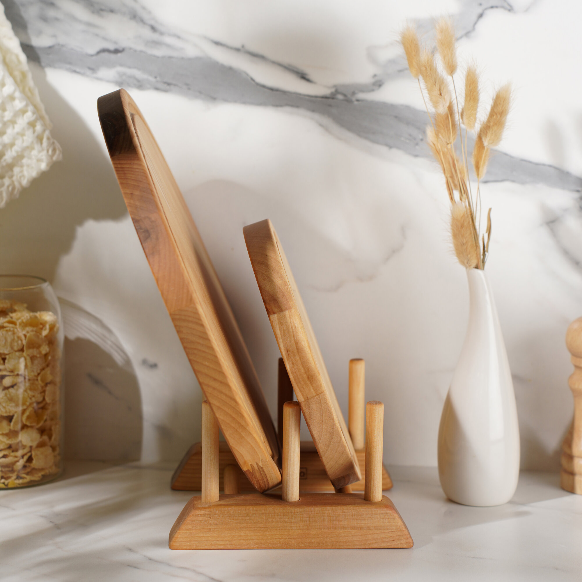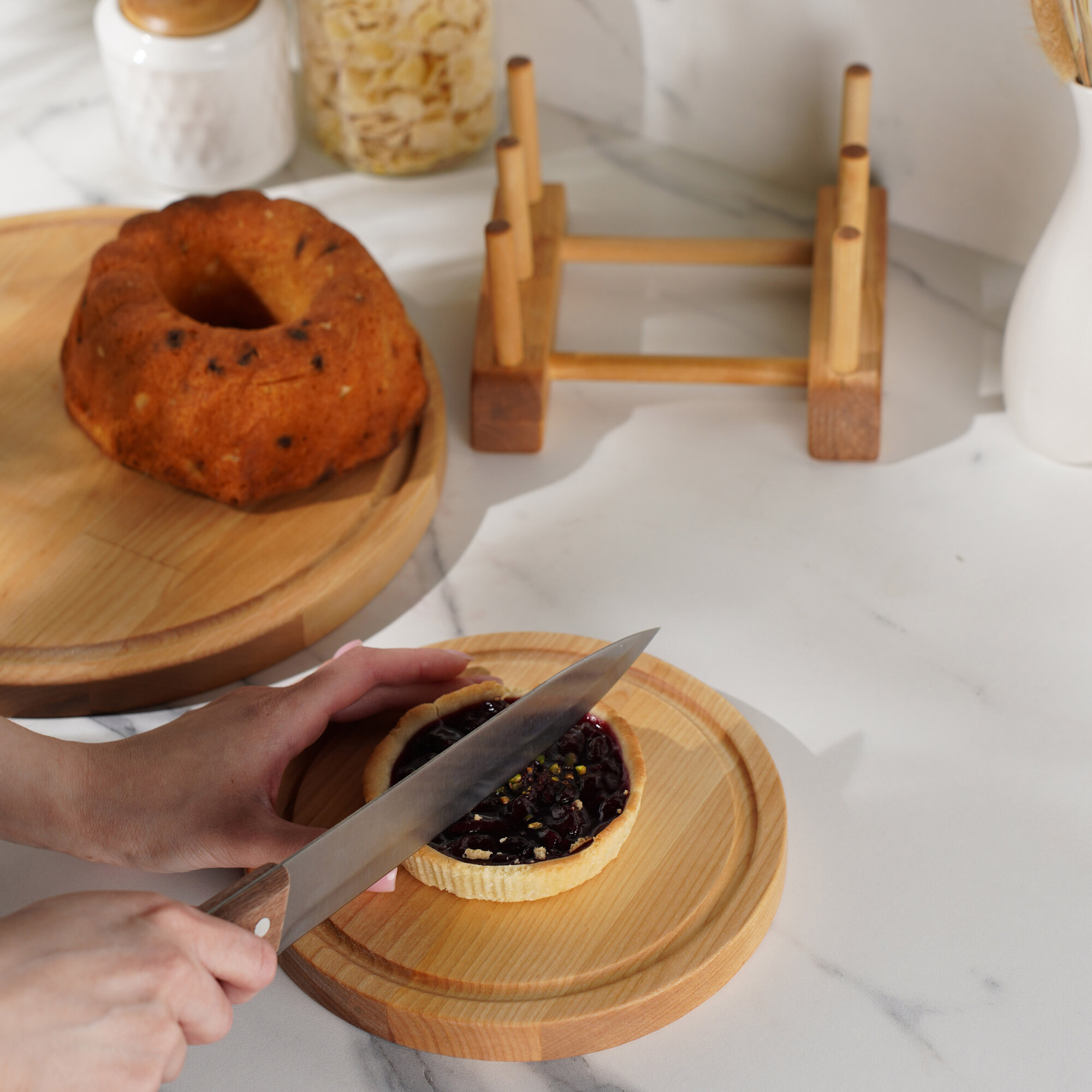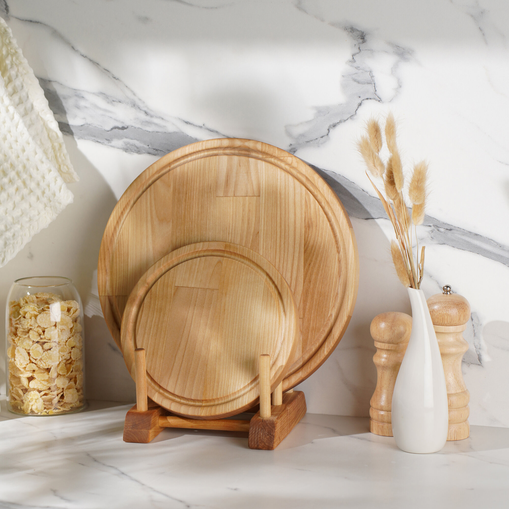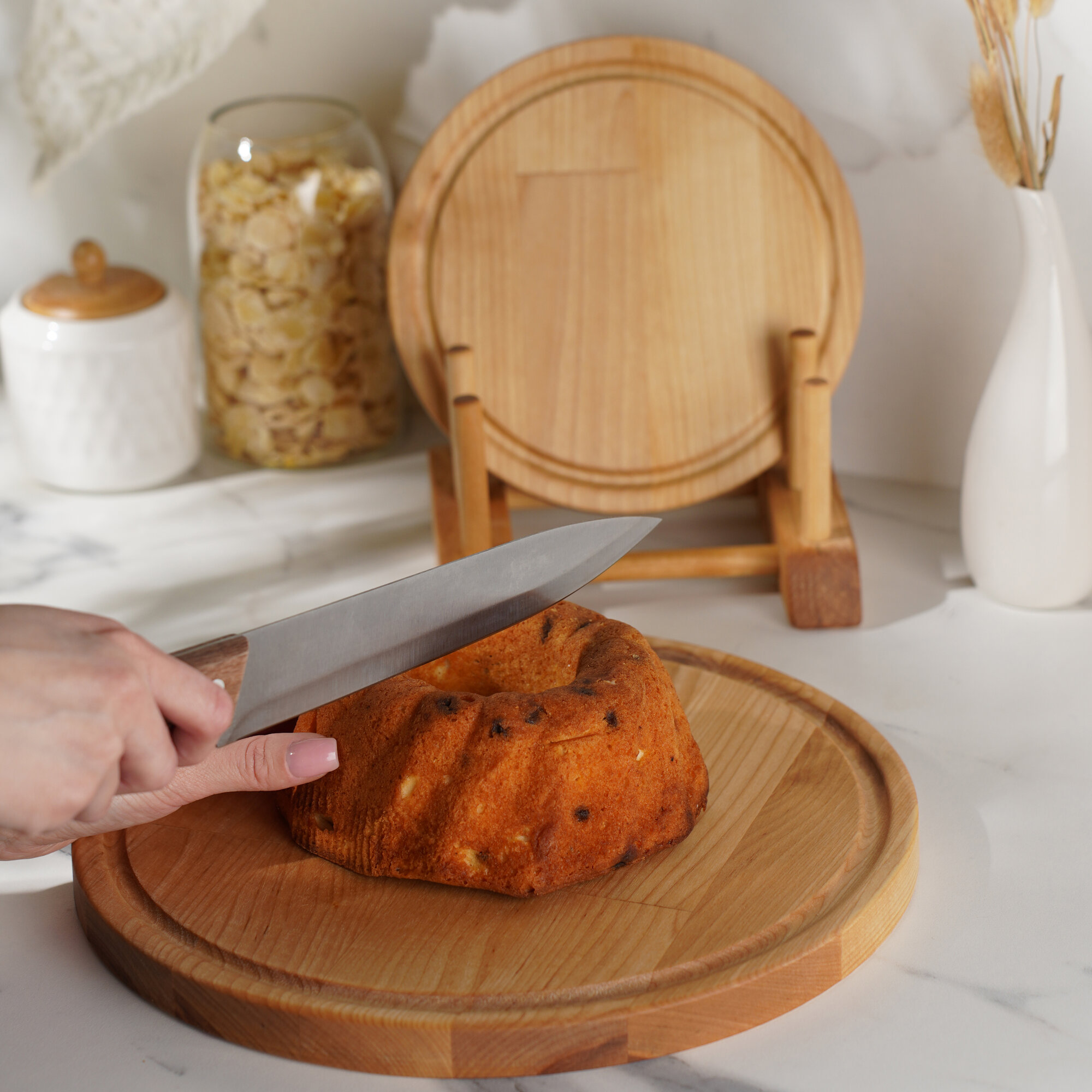 Доска разделочная деревянная для кухни набор + подставка, Набор 2 в 1