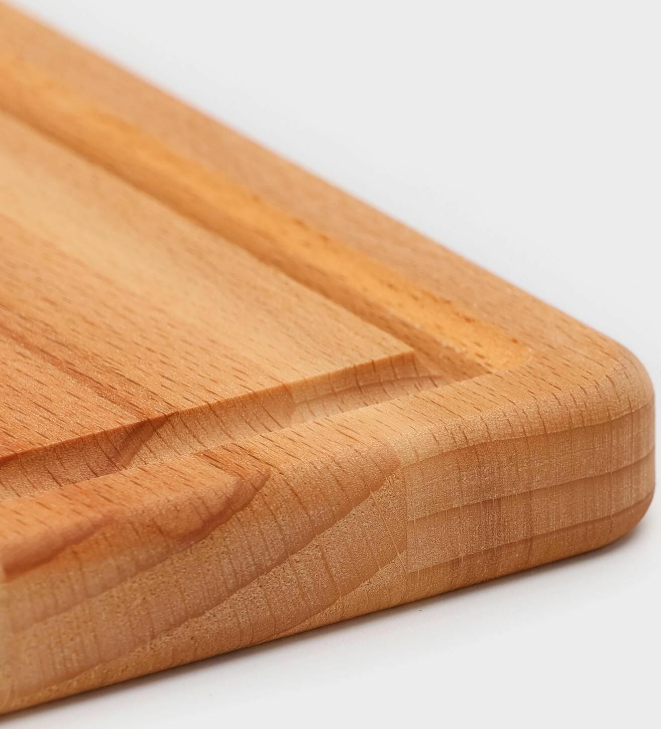 Доска разделочная деревянная с упором "Мастер шеф", 36x26x1.8 см, пропитана минеральным маслом, берёза
