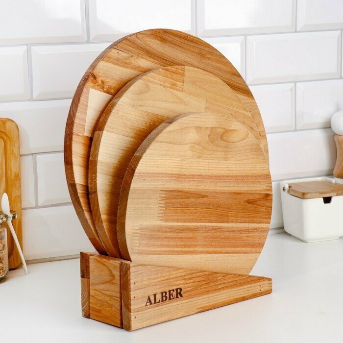 Купить Комплект из 3 - х досок 35х35х1,8 см, 30х30х1,8 см, 25х25х1,8 см Elan Gallery Круг с ручкой на деревянной подставке