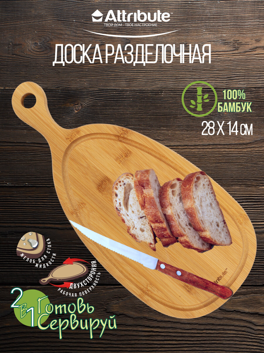 Доска разделочная Attribute BAMBOO CURVE 28x14x1.5см ABX170