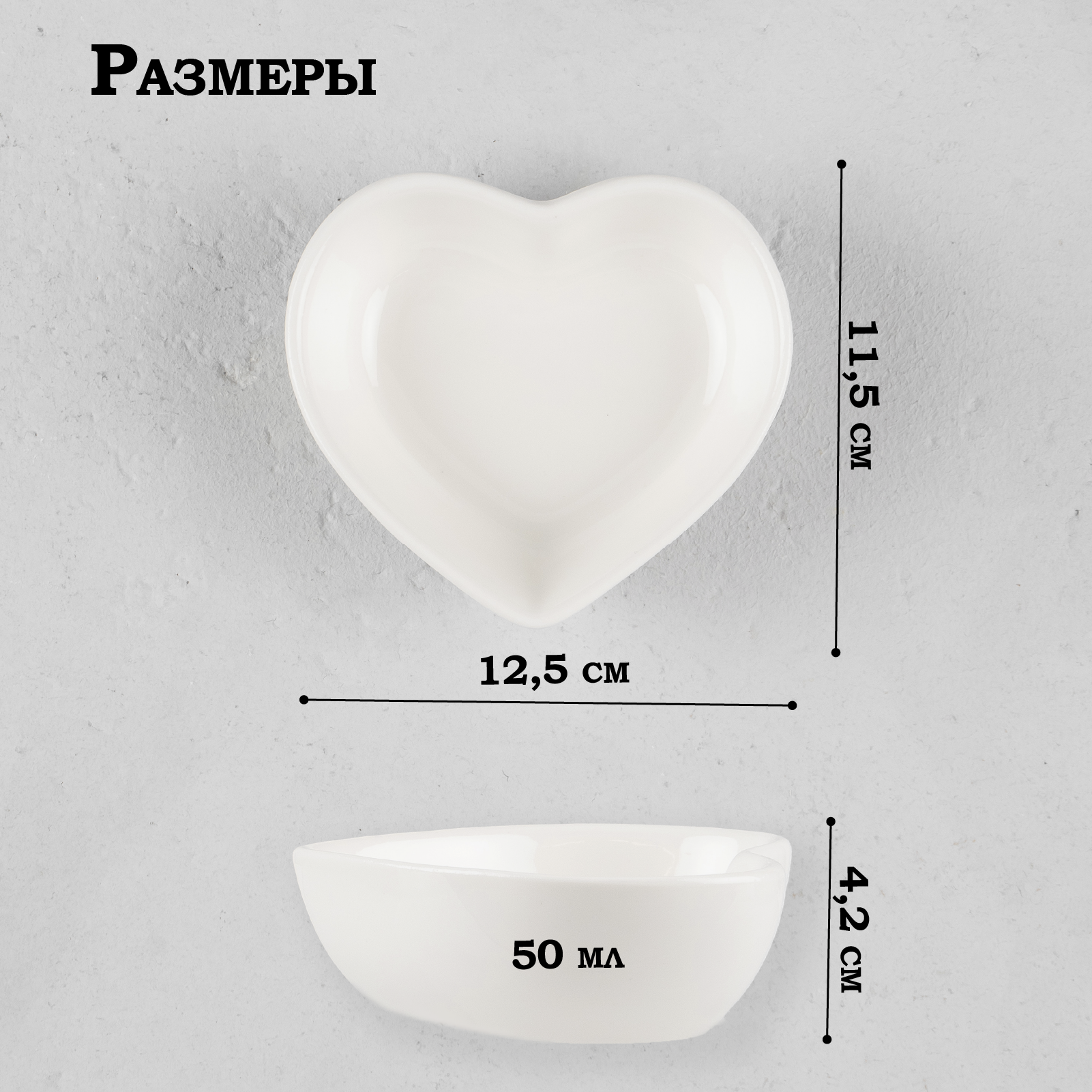 Набор соусников «Сердце», 4 шт., 12,5×11,5 см, 50 мл, цвет белый интересное: