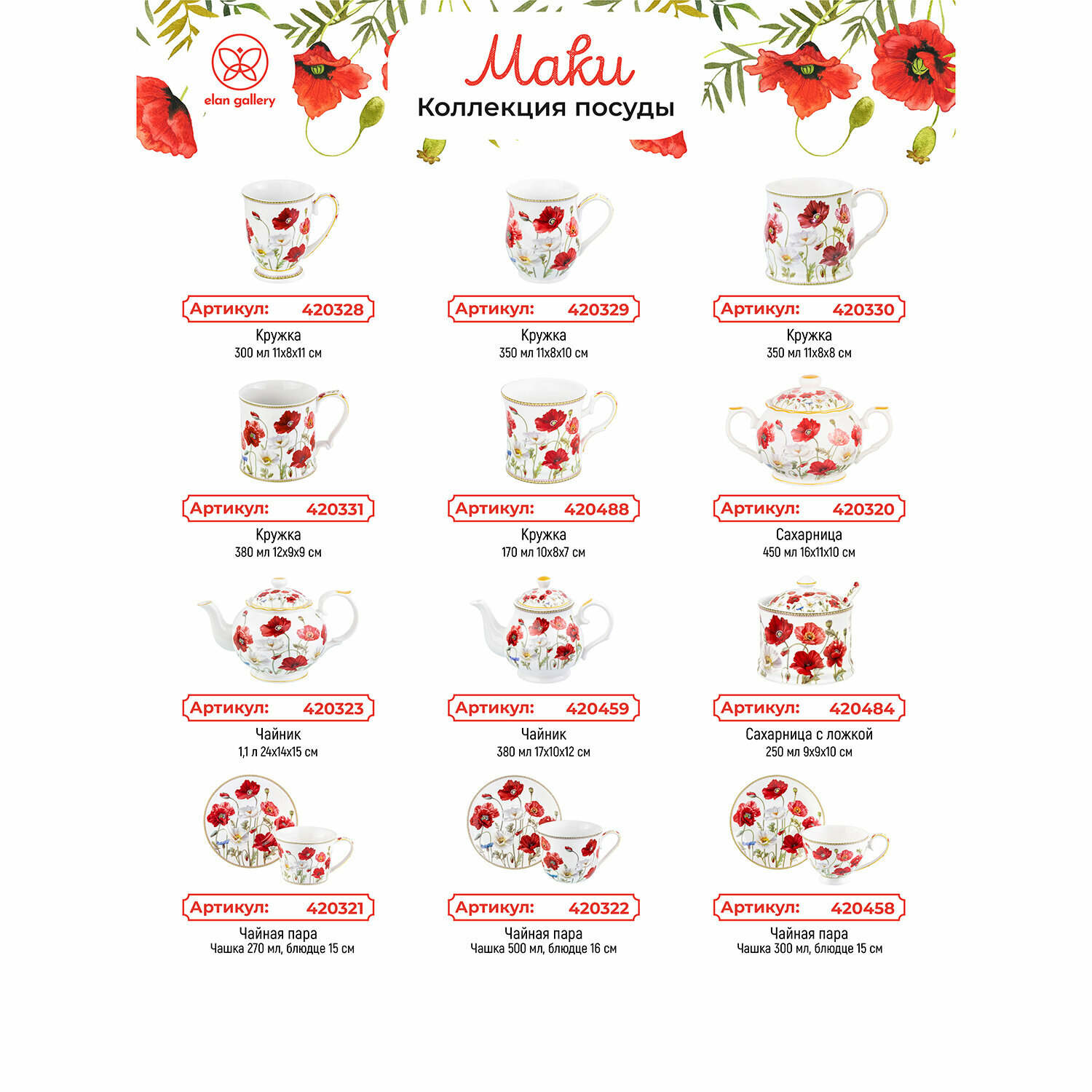 Сахарница 250 мл 9х9х10 см Elan Gallery Маки, с ложкой интересное: