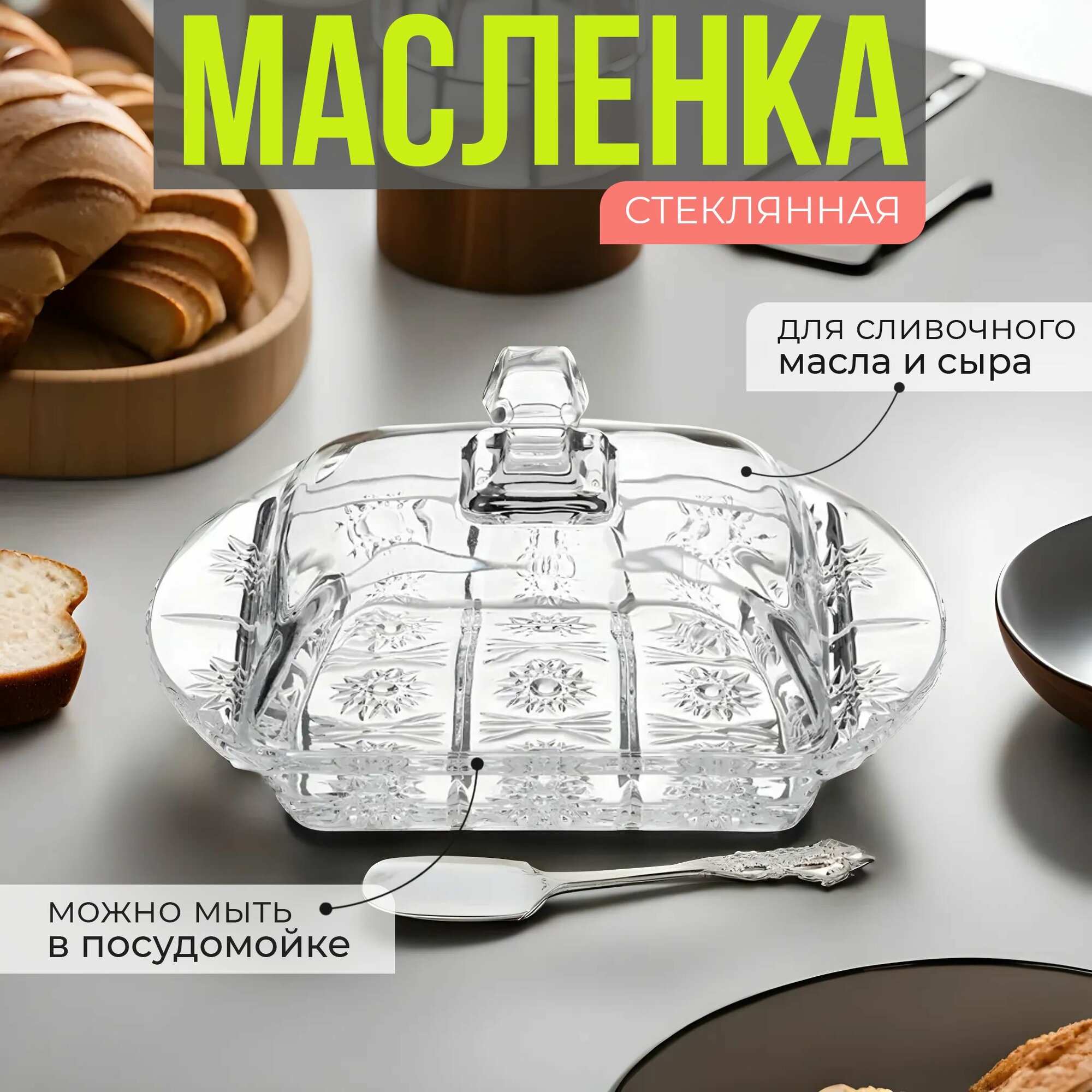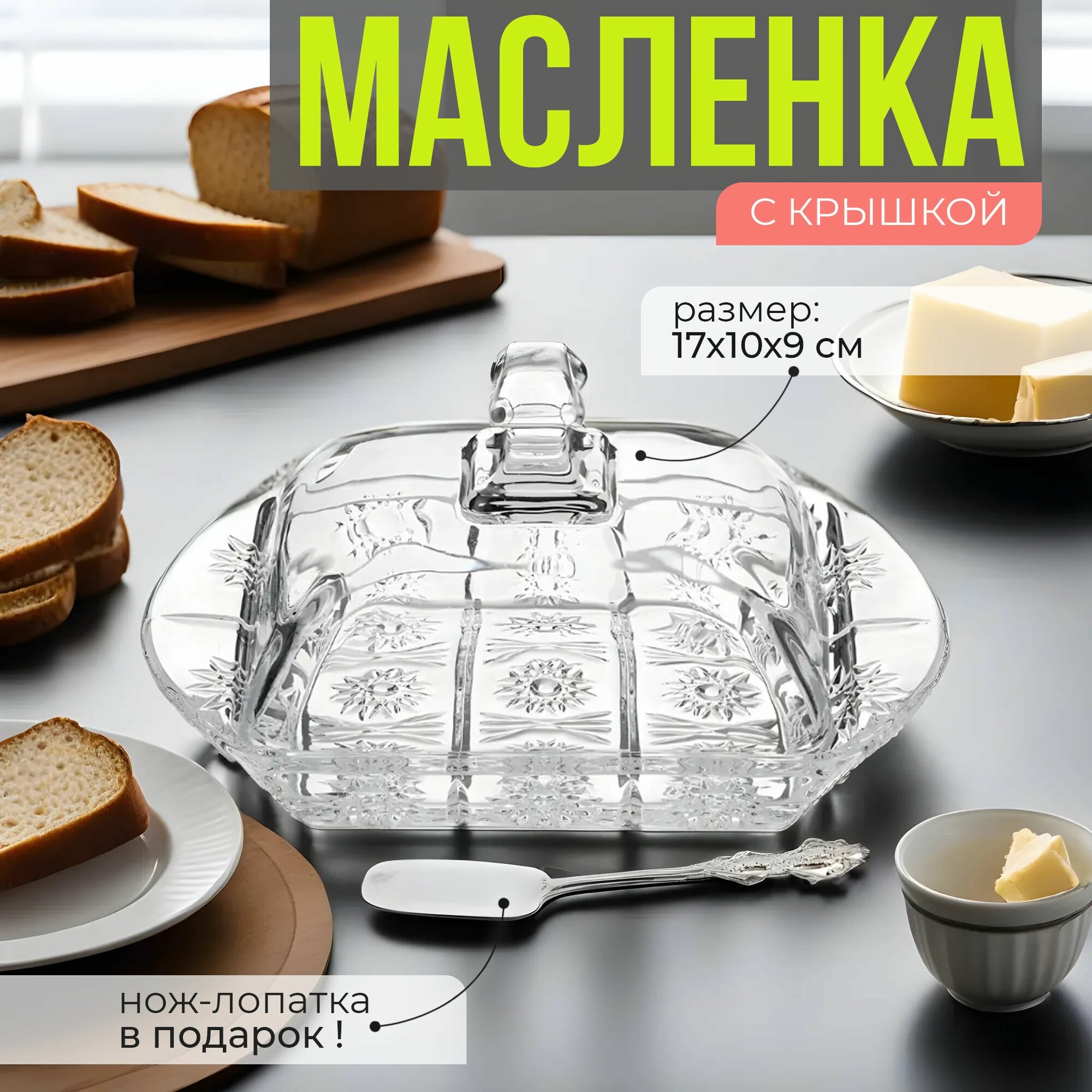 Масленка для сливочного масла "Muza Crystal" 17,5 х 10,5 см., высота 9 см + нож интересное: