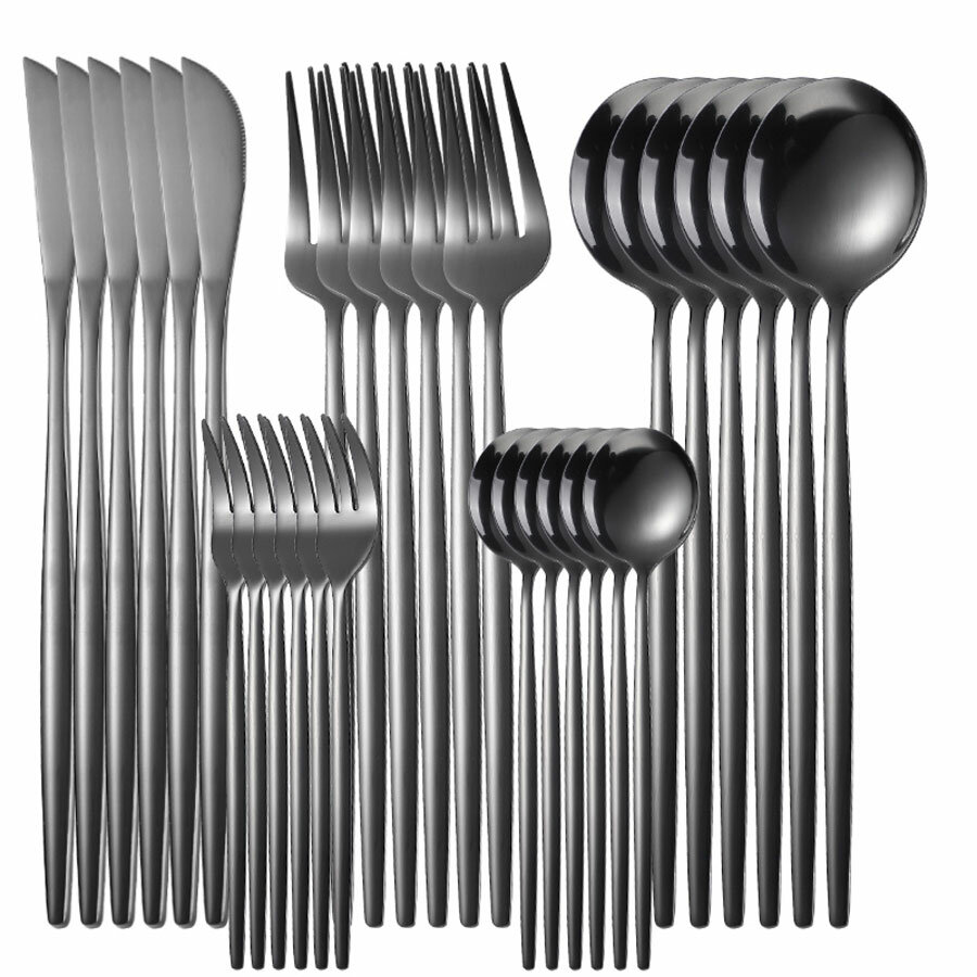 Купить Набор столовых приборов на 6 персон из нержавеющей стали, черн, 30 предмета