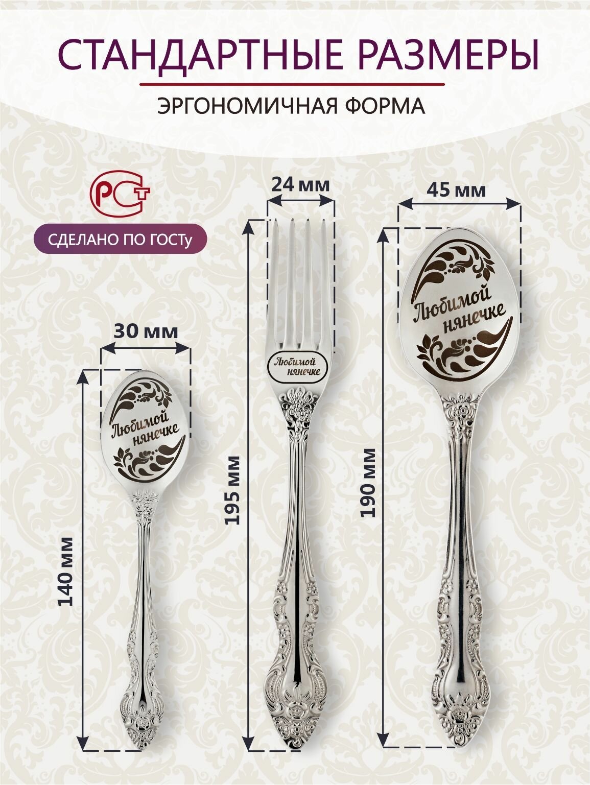 СохранитьПодарочный столовый набор приборов Любимой нянечке из 3-х предметов на подставке интересное:
