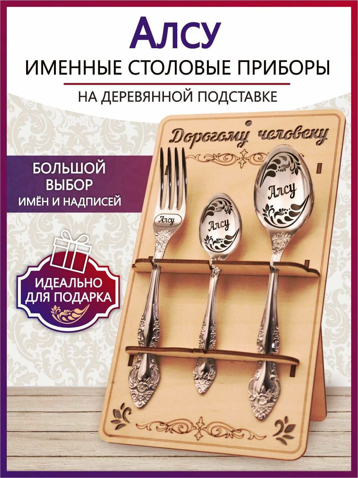 Купить Подарочный столовый набор приборов Алсу из 3-х предметов на подставке