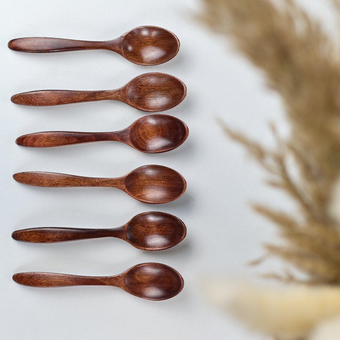 Деревянная чайная ложка / набор 6 шт / Набор чайных ложек для кофе, чая, чайной заварки, десерта / Чайная серия интересное: