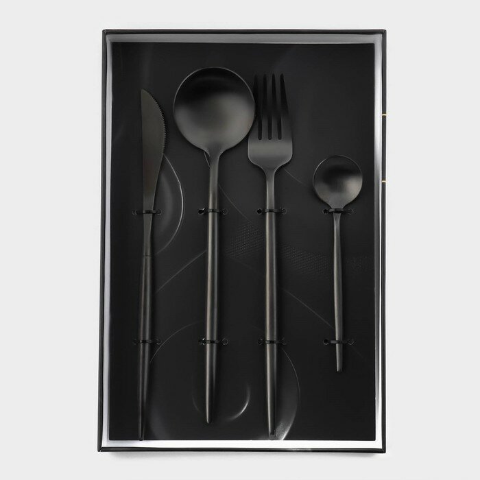Набор столовых приборов Magistro «Фолк», из нержавеющей стали, 4 предмета, цвет чёрный