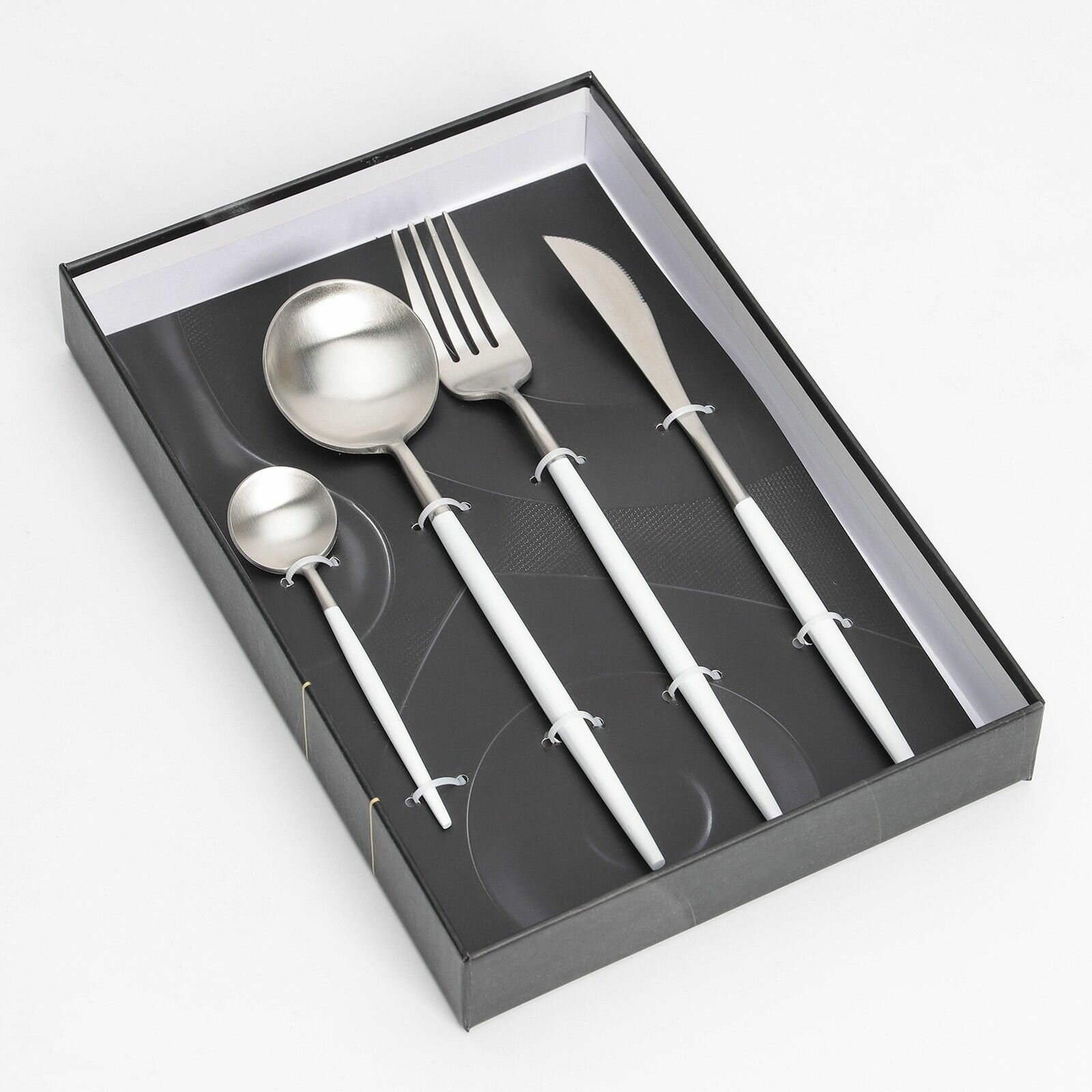 Набор столовых приборов из нержавеющей стали "Фолк", 4 предмета, цвет металла золотой, белые ручки