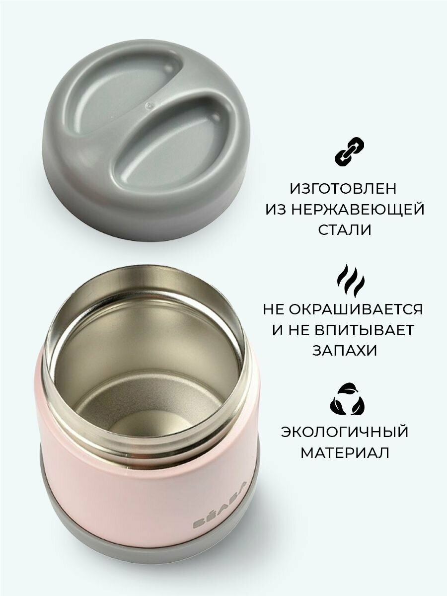 Термоконтейнер 300 мл BEABA THERMO-PORTION INOX, термос контейнер с широким горлом, розовый