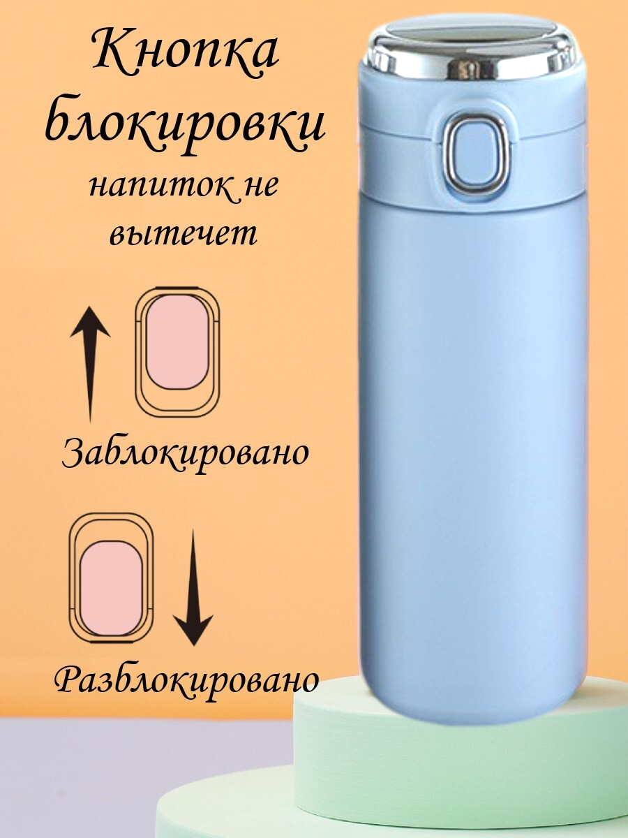 Умный термос с дисплеем, датчиком температуры 420 мл голубой