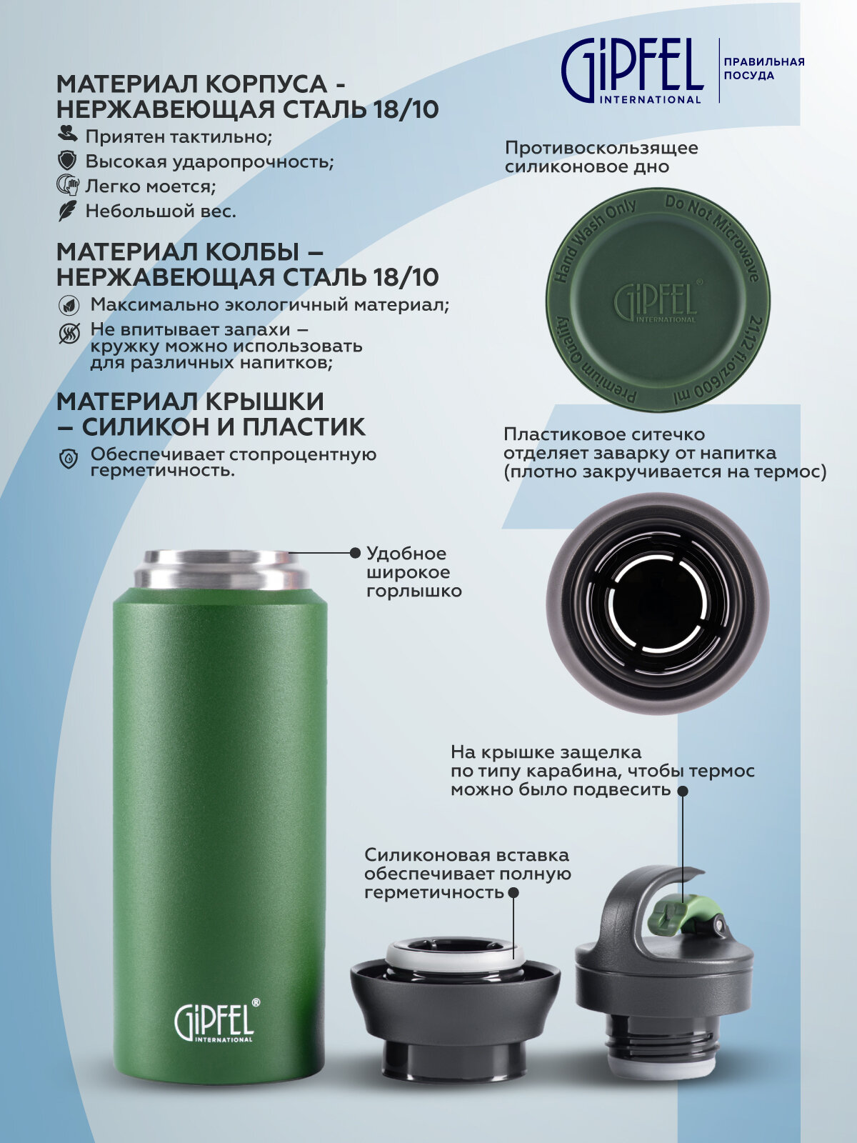 Термос вакуумный Gipfel Ontario 51791 600 мл интересное: