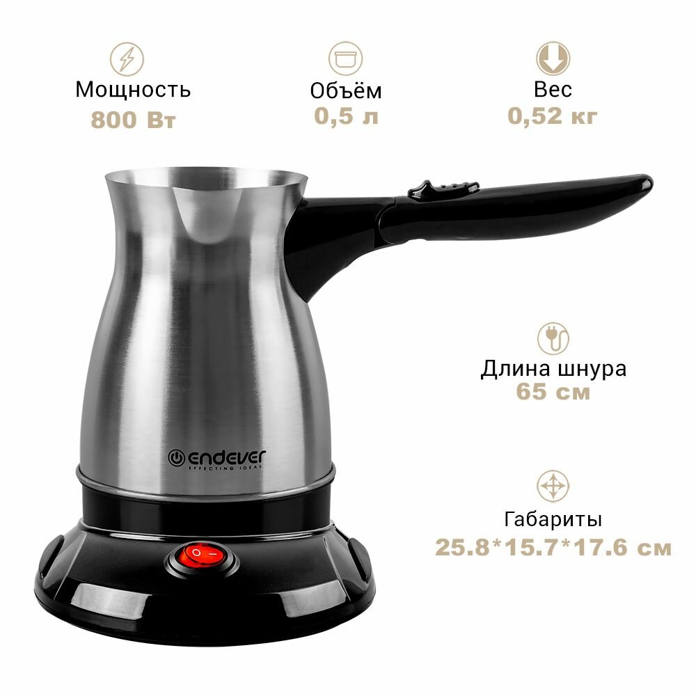 Кофеварка электрическая / турка для кофе Endever Costa-1018, 800 Вт, 0.5 л, защита от перегрева