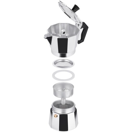 | Дополнительная информация | Современная гейзерная кофеварка выполнена из высококачественного алюминия, имеет удобную ручку, которая не нагревается. Кофеварка состоит из двух емкостей, разделенных специальным фильтром. |