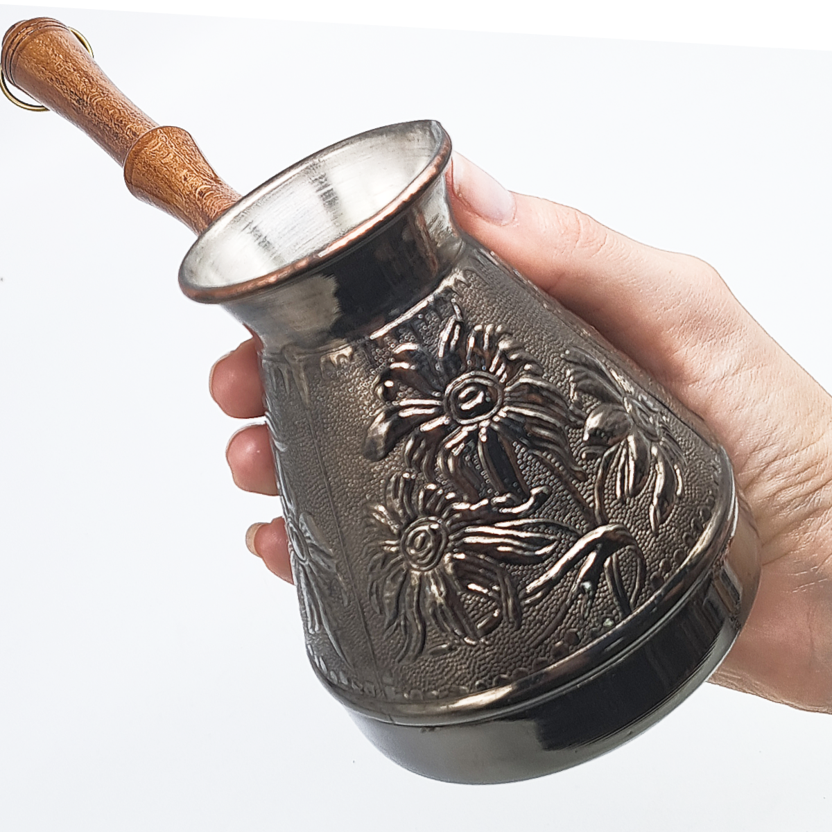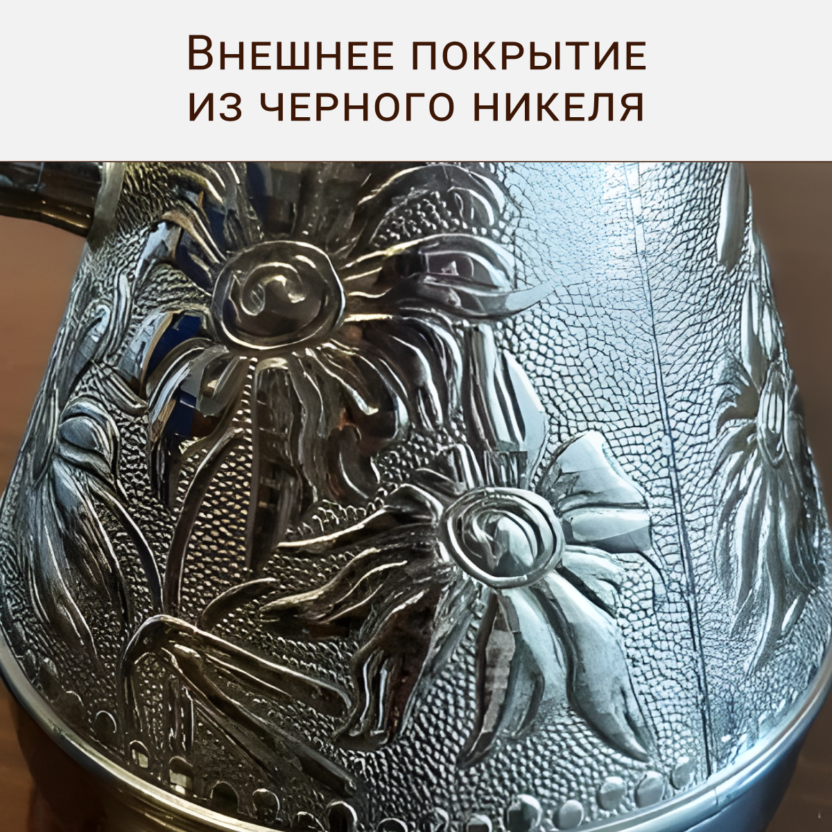 Турка для кофе медная "Ромашка 0,4", турка 400 мл., серебристый. интересное: