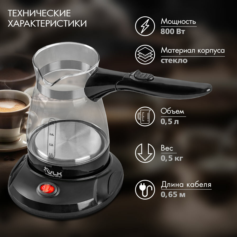 Кофеварка электрическая / турка для кофе VLK VENICE-6006, 800 Вт, защита от перегрева, 0,5 л