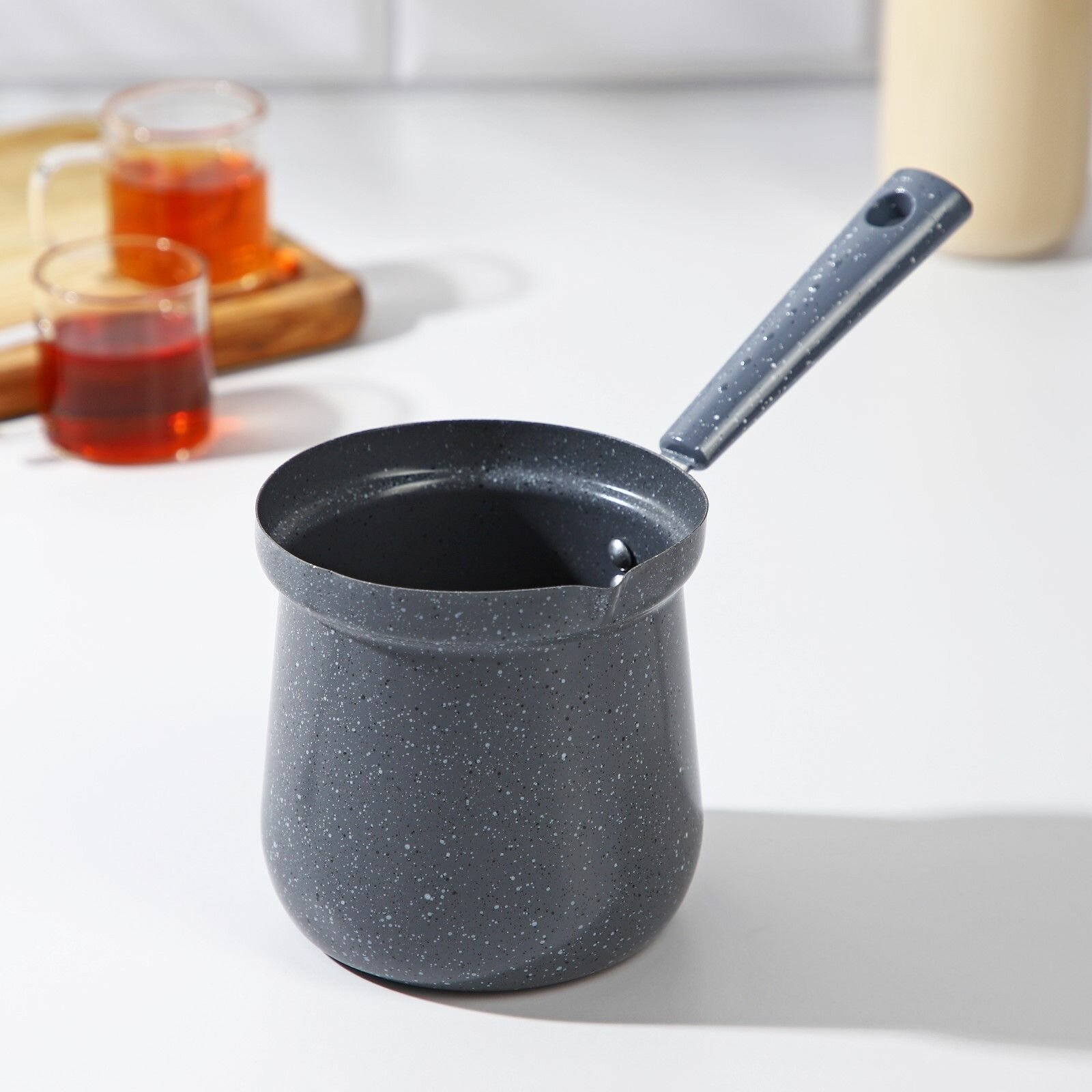 Турка Доляна «Мрамор грэй», 600 мл, d=10 см, 20,5×10×14 см, пластиковая ручка, антипригарное покрытие, индукция, цвет серый интересное: