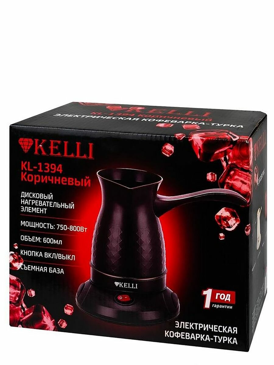 Турка электрическая KELLI KL-1394 0,6 л, 750-800 Вт, черный