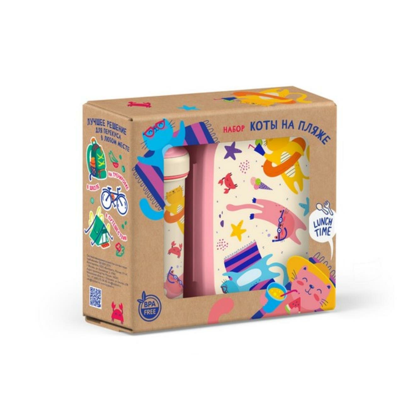 Набор: ланч-бокс 0,98Л и бутылка для воды С петлей 0,4Л С декором (Розовый)