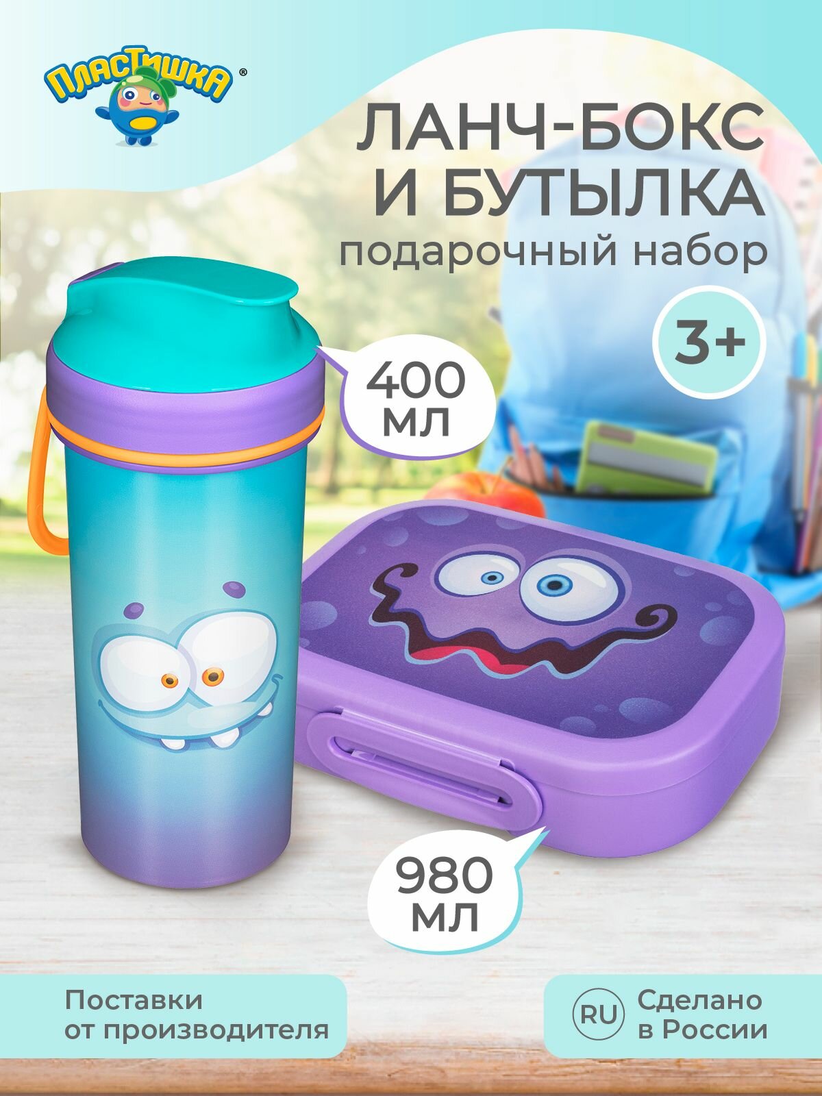 | Комплектация | Ланч-бокс - 1 шт., бутылка для воды с петлей - 1 шт. |