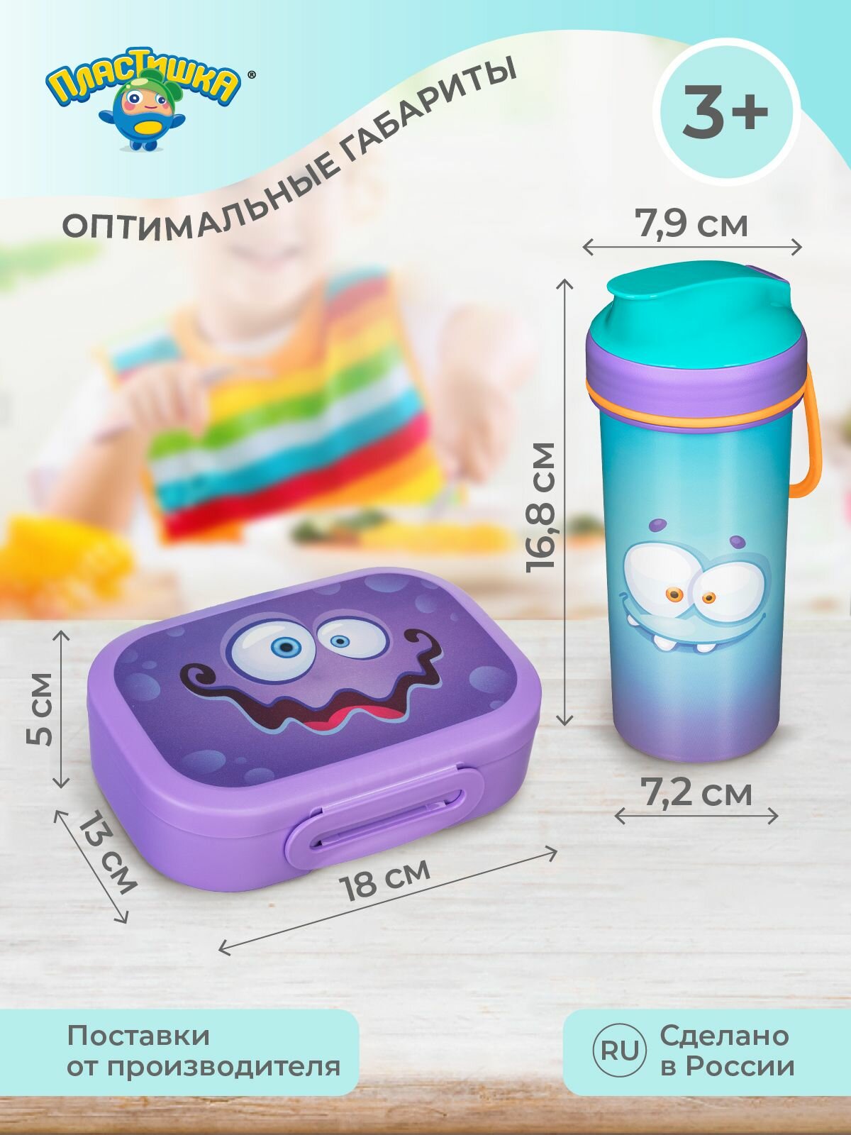 | Дополнительная информация | Бутылка для воды - 16.8 х 7.2 х 7.9 см. Ланч-бокс - 5 х 13 х 18 см. |
