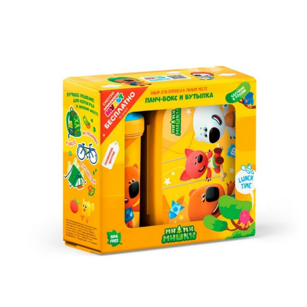 Купить Набор: ланч-бокс 0,98Л и бутылка для воды С петлей 0,4Л С декором "МИ-МИ-МИШКИ" (Оранжевый)
