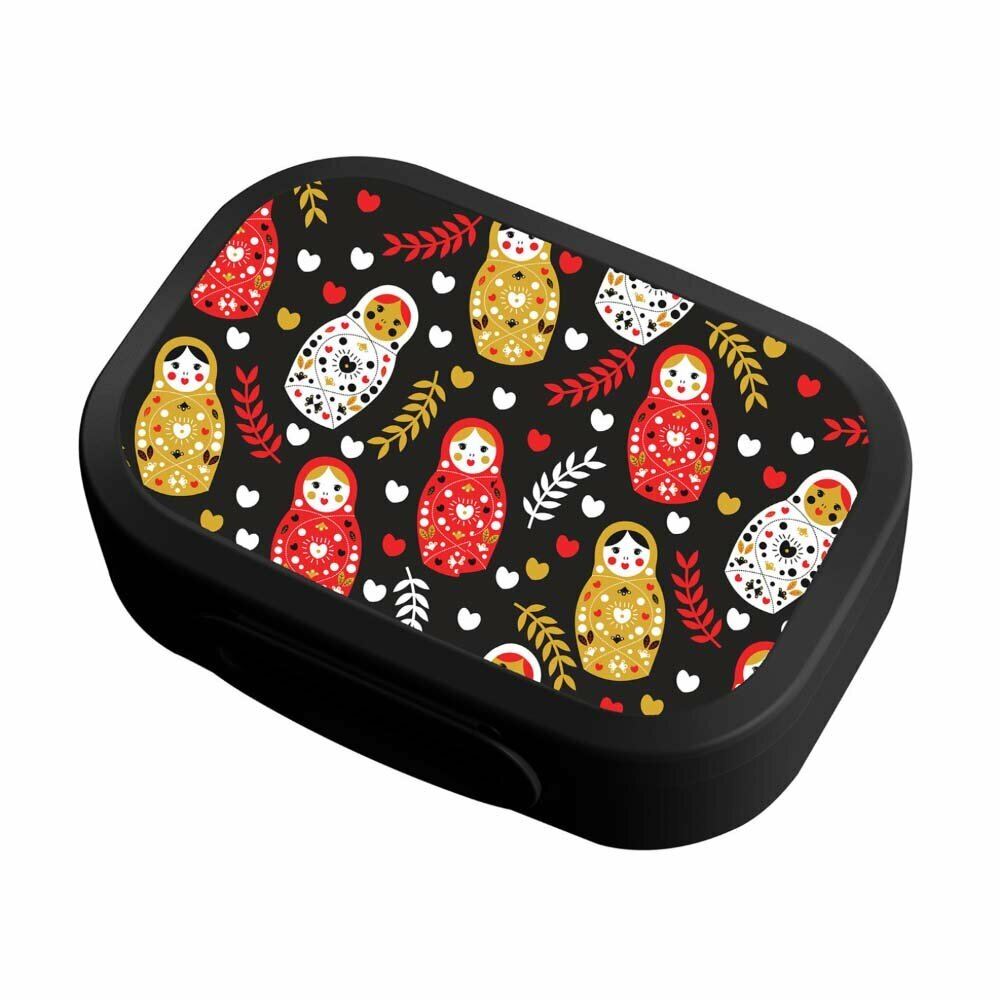 Контейнер для еды, перекусов, ланч-бокс с декором "Матрешки" 980 мл, черный