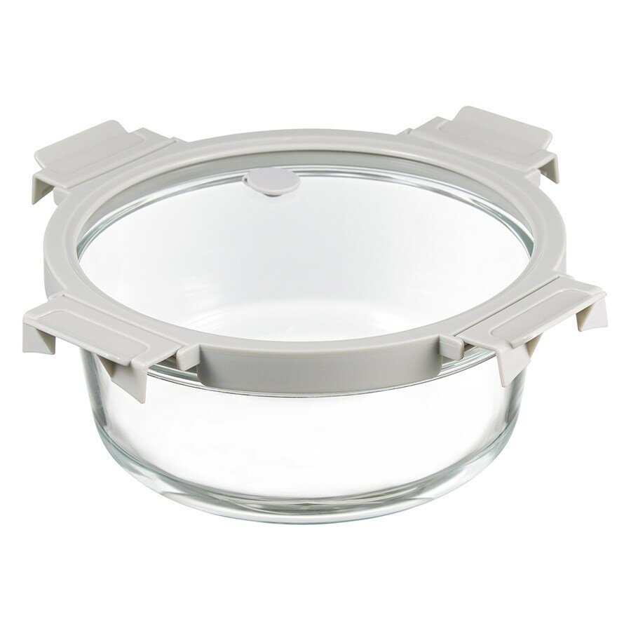 Купить Контейнер для запекания и хранения круглый Smart Solutions 1.3л, стекло, с крышкой, пластик, светло-серый (SFE-SS-CN-GLS-GR-1.3)