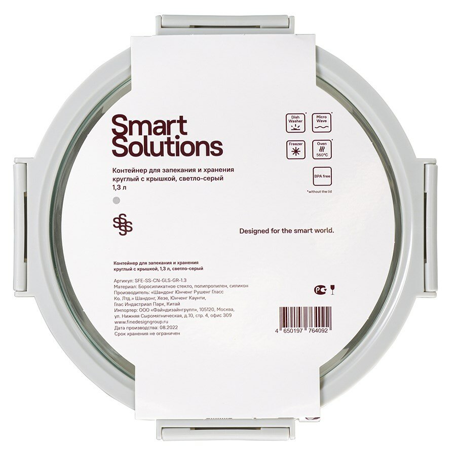 СохранитьКонтейнер для запекания и хранения круглый Smart Solutions 1.3л, стекло, с крышкой, пластик, светло-серый (SFE-SS-CN-GLS-GR-1.3) интересное: