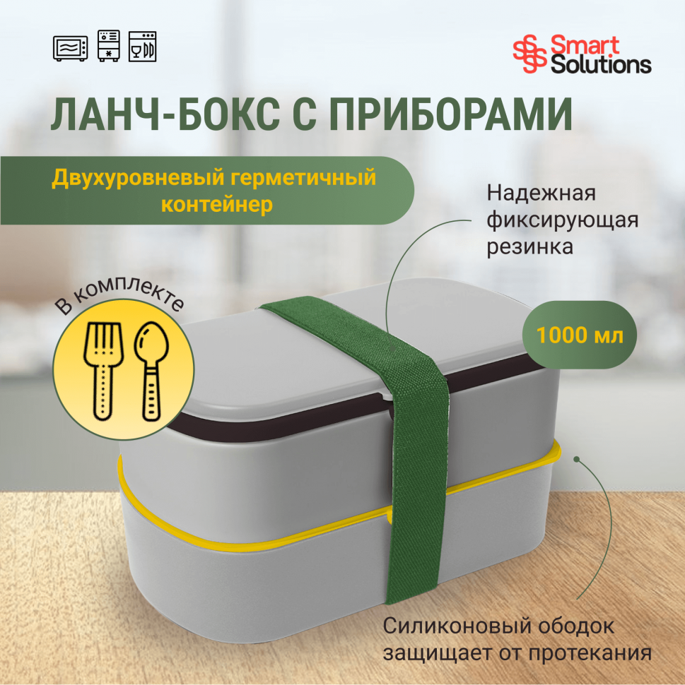 Купить Ланч-бокс с приборами Smart Solutions Food Time 1л, серый (SS-LBDL-PP-GR-1)