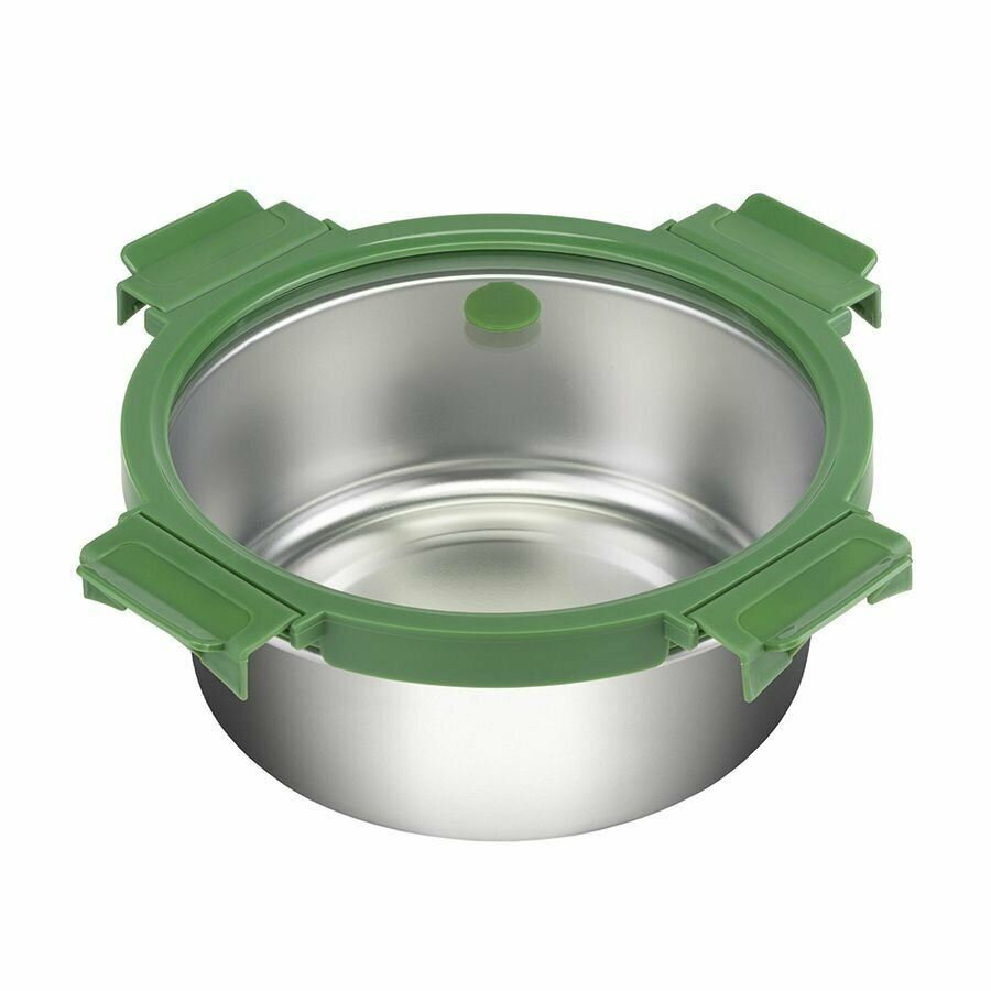 Ланч-бокс стальной со стеклянной крышкой, 650 мл, зеленый