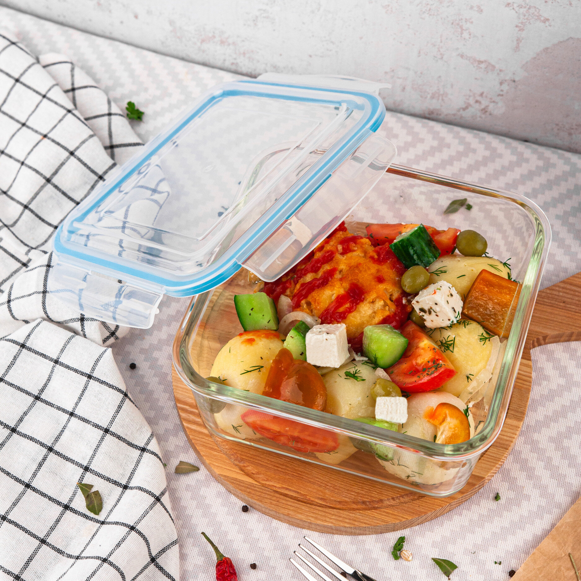 Контейнер для еды стеклянный квадратный 2200 мл с крышкой Good Sale интересное: