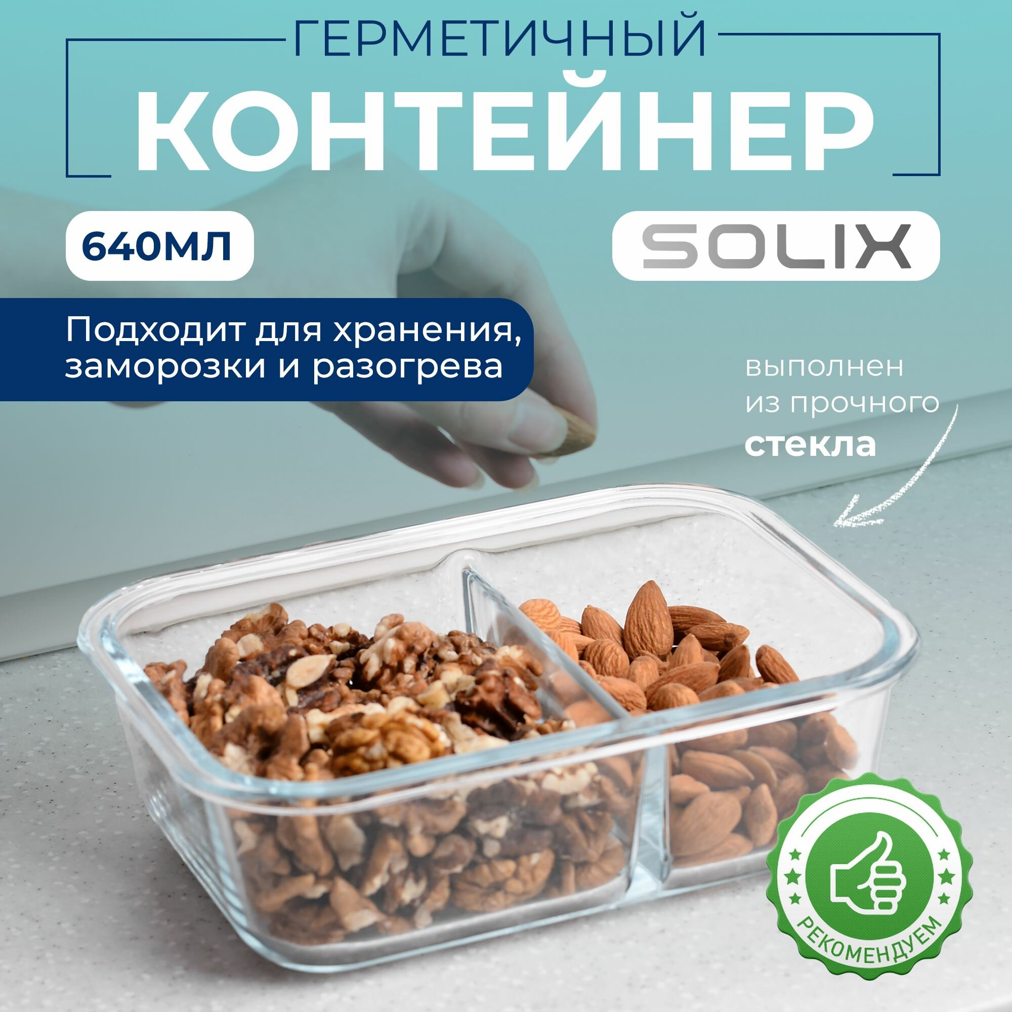 Стеклянный контейнер SOLIX с защелками, крышкой с клапаном и перегородкой, 640 мл интересное: