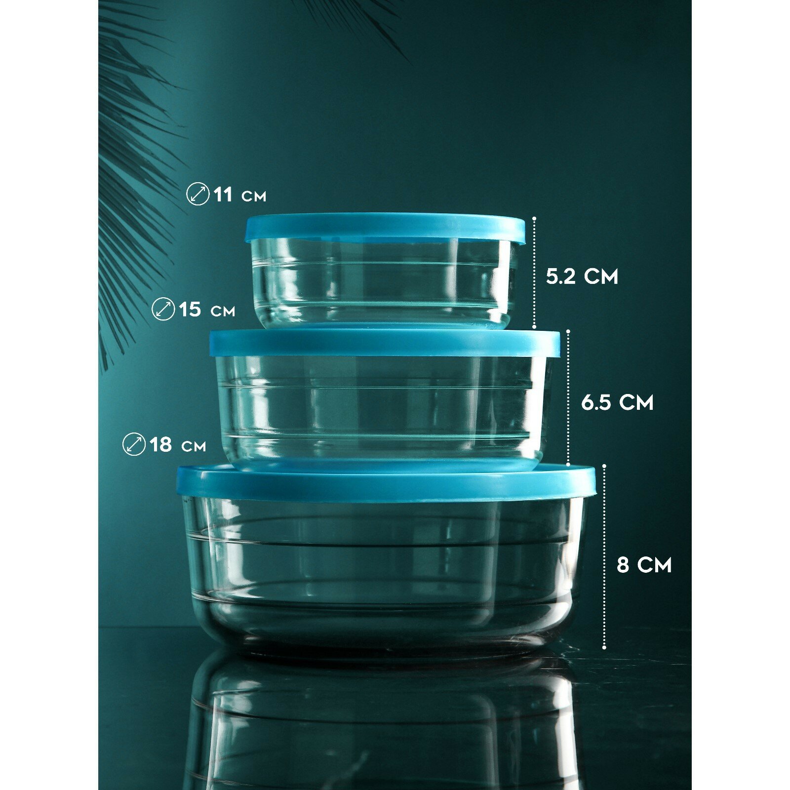 Набор контейнеров Дена, 1500 мл, 800 мл, 400 мл, стекло, Иран Isfahan Glass 9621781 .
