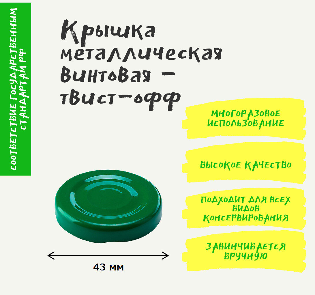 Крышка для консервирования твист 43 мм, 20 шт. Винтовая для стеклянных банок, для стеклянных бутылок. интересное: