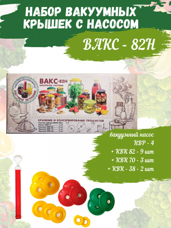 Комплект для вакуумного хранения вакс 82Н насос+14крышек / Крышки для банок / крышки для консервации